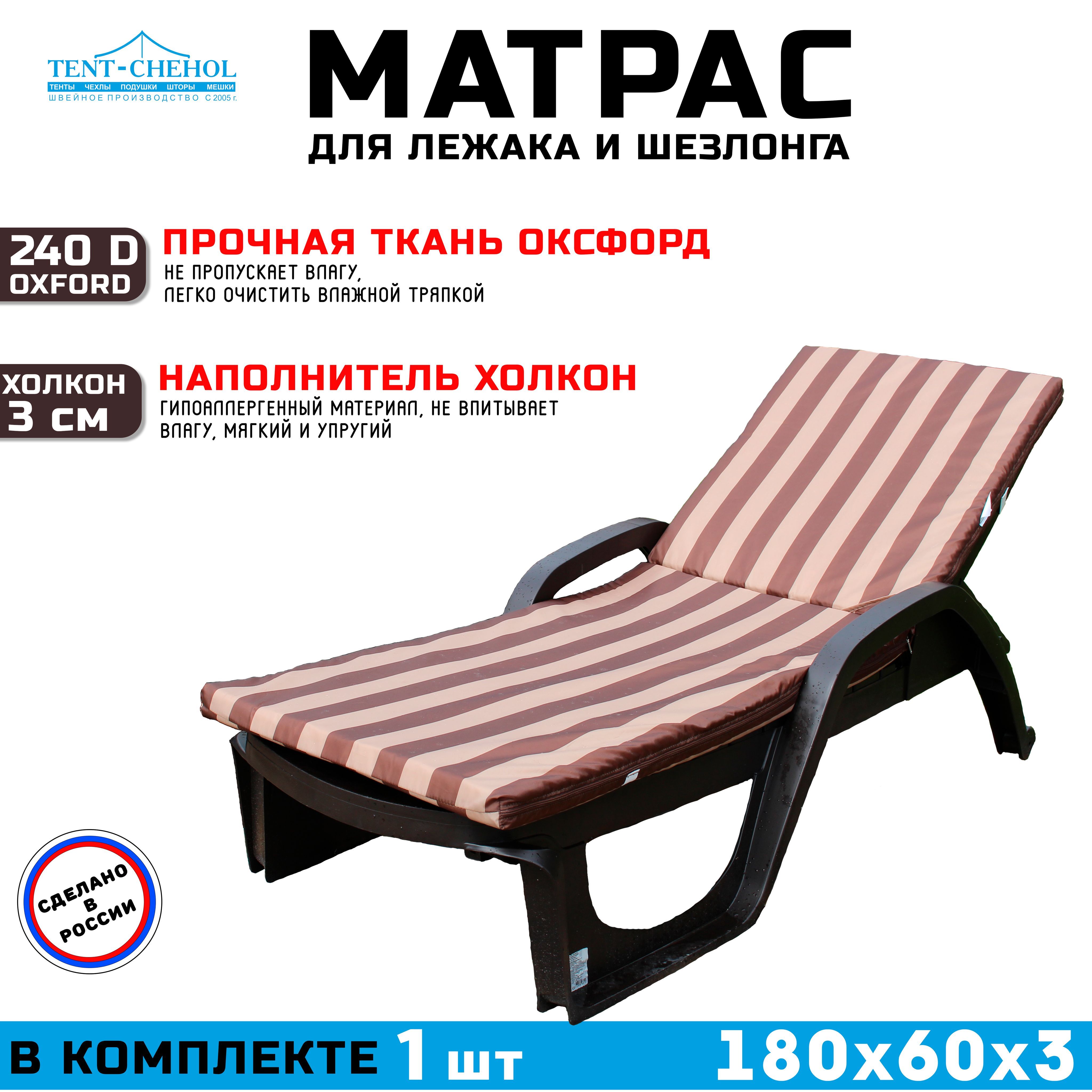Купить Матрас для шезлонга и лежака 180х60х3 (бежево-коричневый) цена 1500 руб. в Москве и СПб с доставкой по России