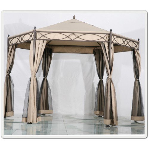 Крыша для шестиугольной беседки Нью-Йорк 1 выполнена из полиэстера с водоотталкивающей пропиткой. Для защиты от насекомых, комаров шатер дополнительно оборудуется специальными сетками, которые не препятствуют циркуляции воздуха.