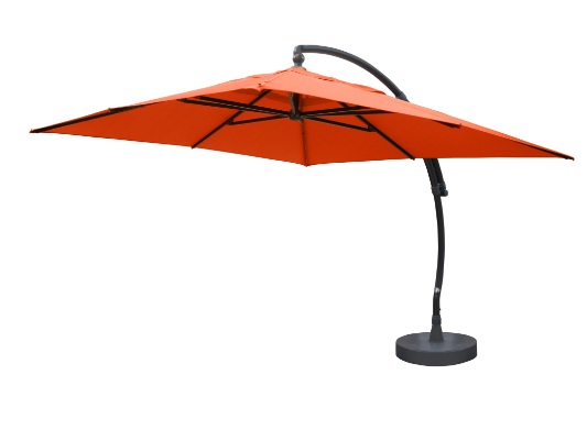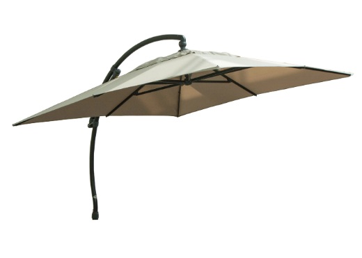 Тенты на двухкупольные зонты с боковой опорой могут быть изготовлены из полимерных тканых или плёночных материалов. К примеру, может быть использован полиэстер, поливинилхлорид, акрил. Самыми надёжными являются тенты, изготовлены из нейлона. В зависимости от характеристик эти ткани могут быть устойчивыми к 75-99% ультрафиолета, они создают зону, в которой смогут укрыться от солнца несколько человек. Даже в том случае, если на улице начнётся дождь, водонепроницаемые куполы смогут защитить посетителей от плохой погоды.